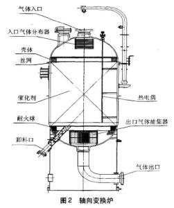 變換爐是合成氨工廠生產(chǎn)一氧化碳工段的設(shè)備,變換爐的結(jié)構(gòu)能否滿足工藝要求與計算設(shè)備、可靠性直接影響到產(chǎn)量、能耗、轉(zhuǎn)化率、觸媒用量和投資費(fèi)用等。變換爐的結(jié)構(gòu)隨著現(xiàn)代技術(shù)的發(fā)展和現(xiàn)代氨生產(chǎn)量需求一直在不斷的發(fā)展中。